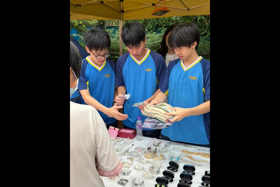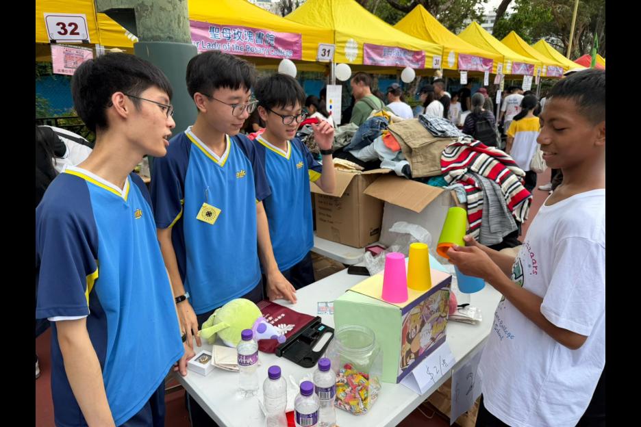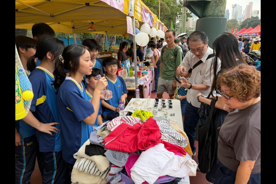 参與同學積極推銷貨品,為慈善籌款不遺餘力。