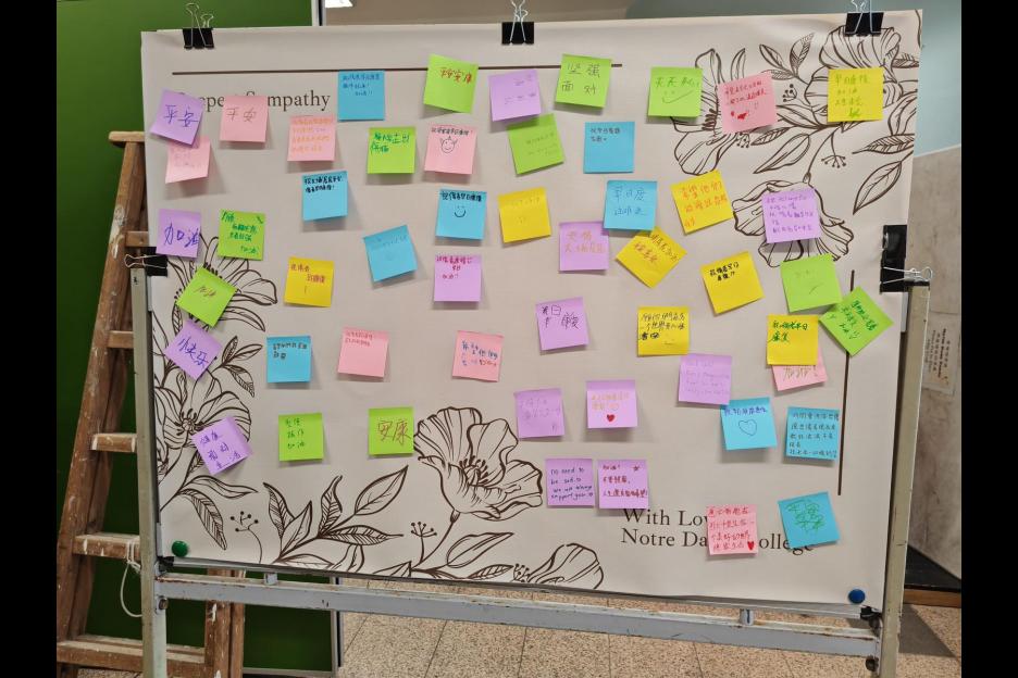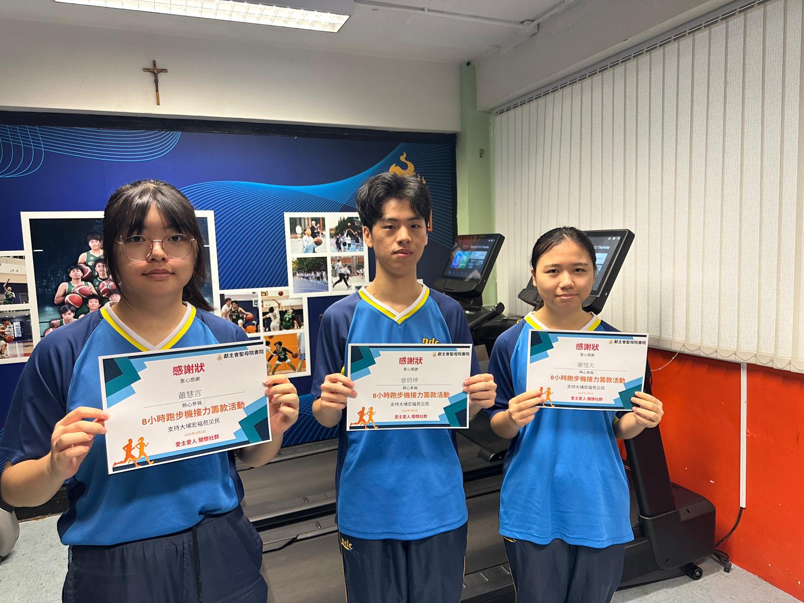 本校於2025年12月4日舉辦了「八小時跑步機接力籌款活動」。此次活動不僅是體能的挑戰,更是愛心與承擔的實踐,旨在為早前因五級火警而受影響的大埔宏福苑災民送上慰問與支持。同時,我們亦希望藉此機會,深化學生對社會弱勢群體的關懷,身體力行實踐愛主愛人精神。在活動當日,我們特別設置了心意板,讓同學們向大埔居民表達關懷與支持。是次活動共有112名師生無間斷接力跑步8小時,成功籌得港幣29811元。我們已將這筆善款轉交至「香港特區政府大埔宏福苑援助基金」,希望能協助受災家庭渡過難關。