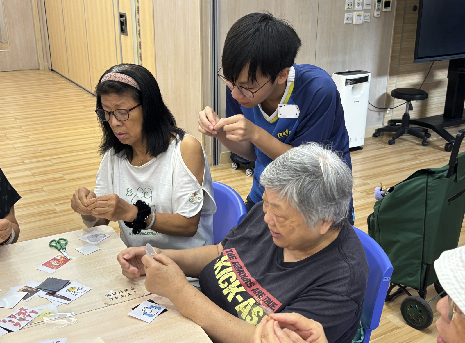 探訪過程中,學生代表與長者們相互交流,分享生活點滴,又進行集體遊戲,一同製作小手作,可謂樂也融融。