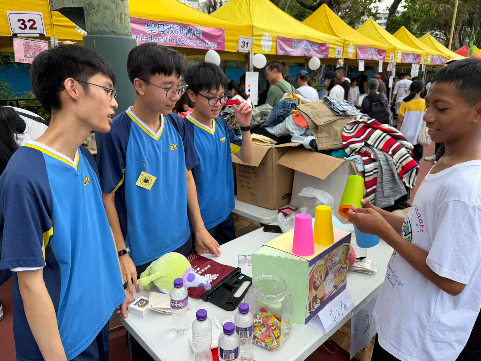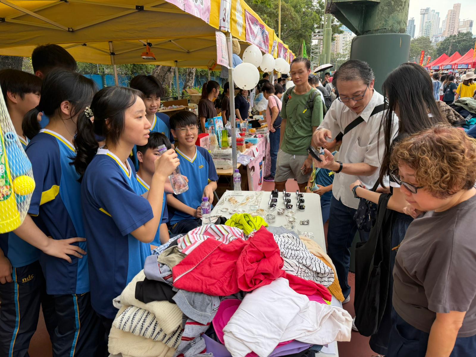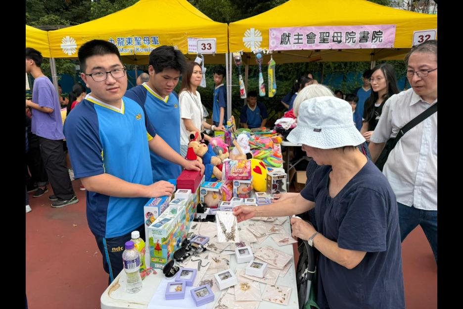 参與同學積極推銷貨品,為慈善籌款不遺餘力。
