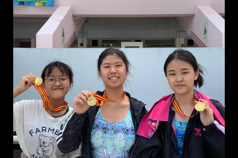 本校6A班陳雅穎、郭芷晴和5A班張凱欣參加由泳濤會主辦,九龍城區議會贊助的泳濤匯聚龍城 水上競技賀國慶游泳比賽, 她們於4X50米自由式接力獲得冠軍