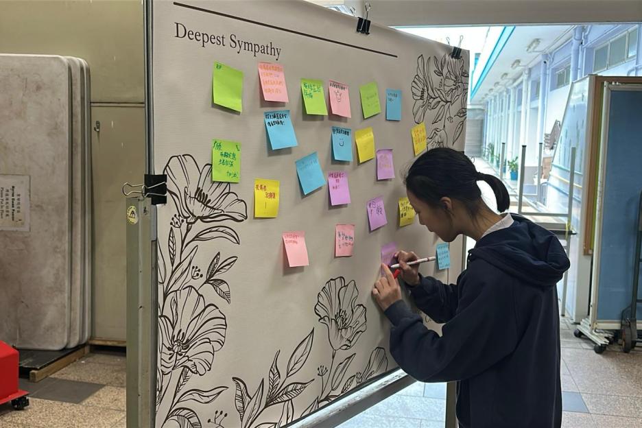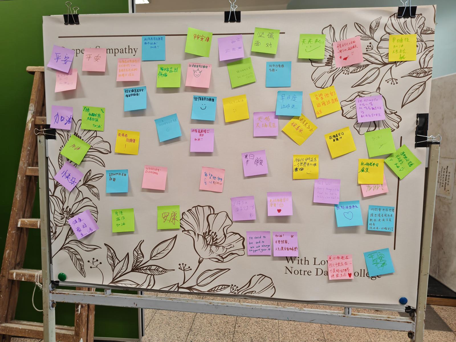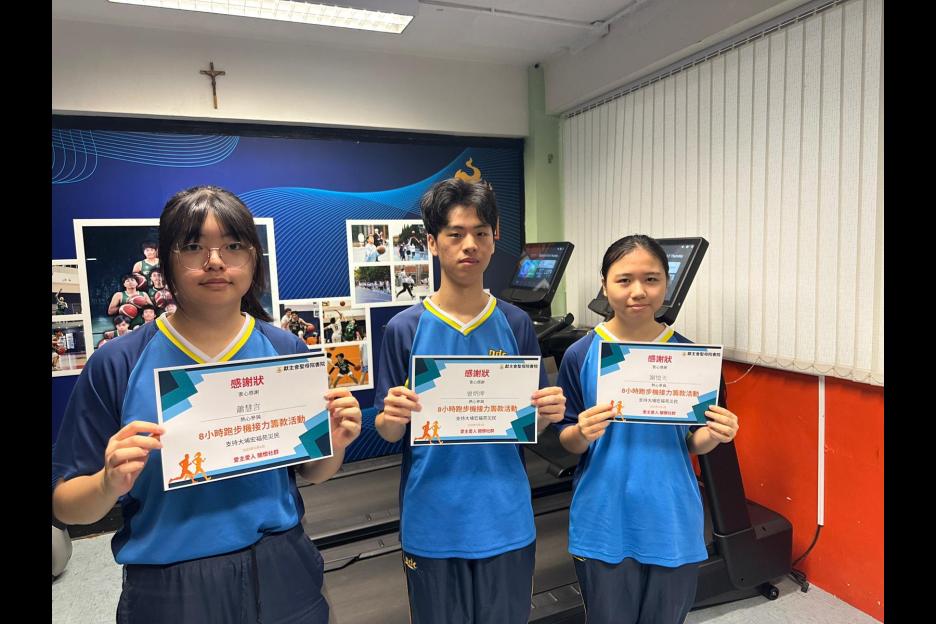 本校於2025年12月4日舉辦了「八小時跑步機接力籌款活動」。此次活動不僅是體能的挑戰,更是愛心與承擔的實踐,旨在為早前因五級火警而受影響的大埔宏福苑災民送上慰問與支持。同時,我們亦希望藉此機會,深化學生對社會弱勢群體的關懷,身體力行實踐愛主愛人精神。在活動當日,我們特別設置了心意板,讓同學們向大埔居民表達關懷與支持。是次活動共有112名師生無間斷接力跑步8小時,成功籌得港幣29811元。我們已將這筆善款轉交至「香港特區政府大埔宏福苑援助基金」,希望能協助受災家庭渡過難關。