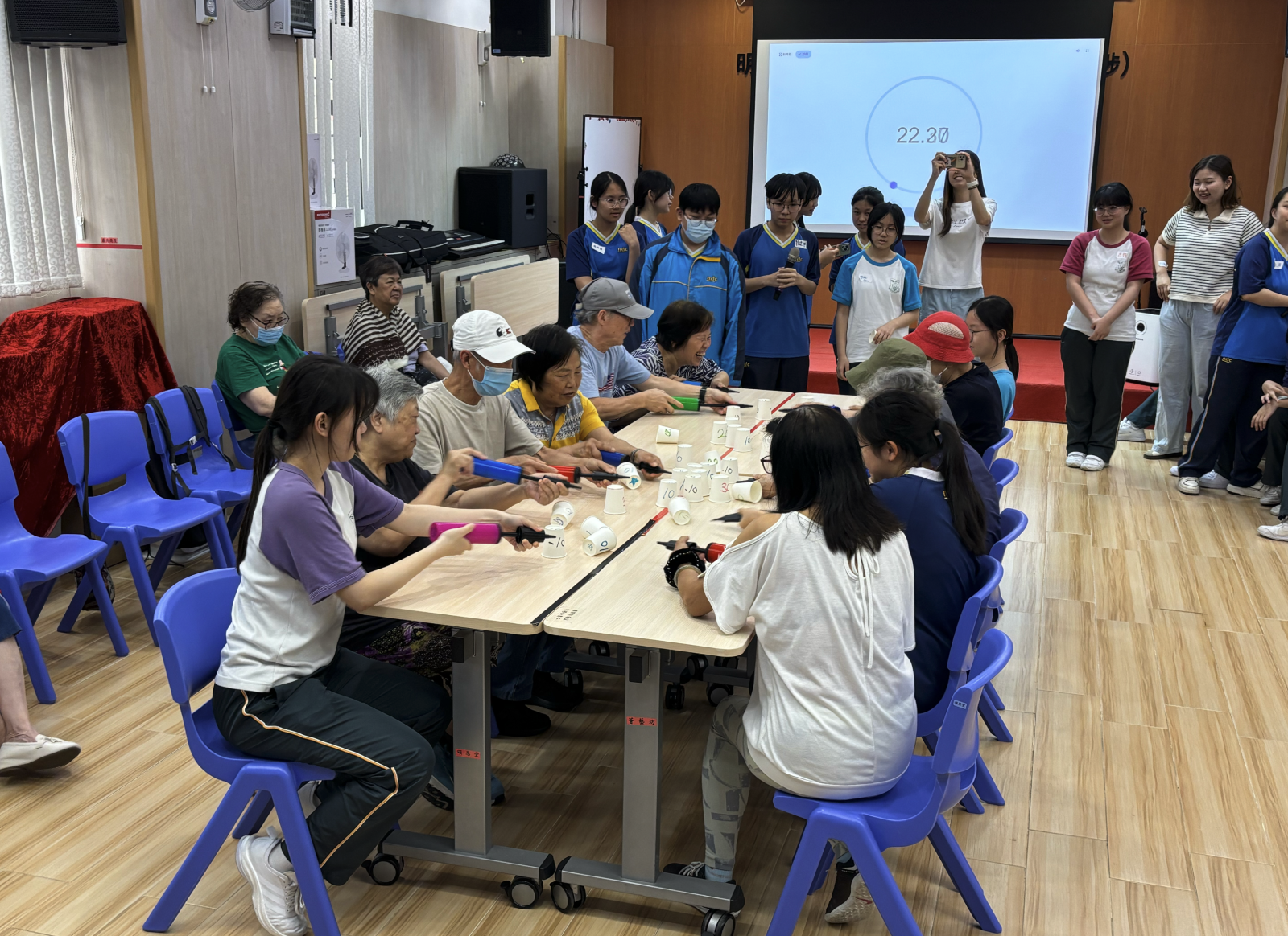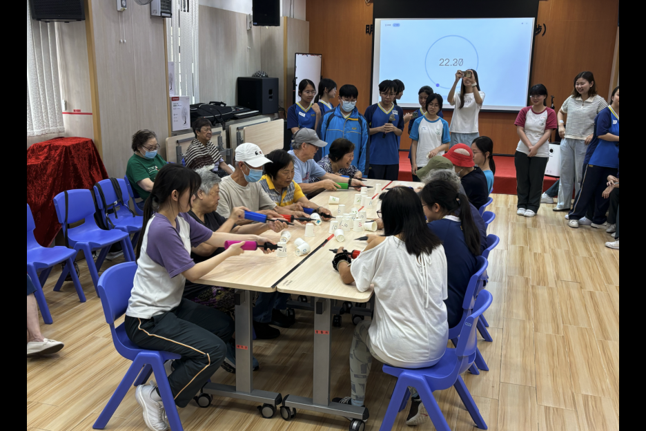 探訪過程中,學生代表與長者們相互交流,分享生活點滴,又進行集體遊戲,一同製作小手作,可謂樂也融融。