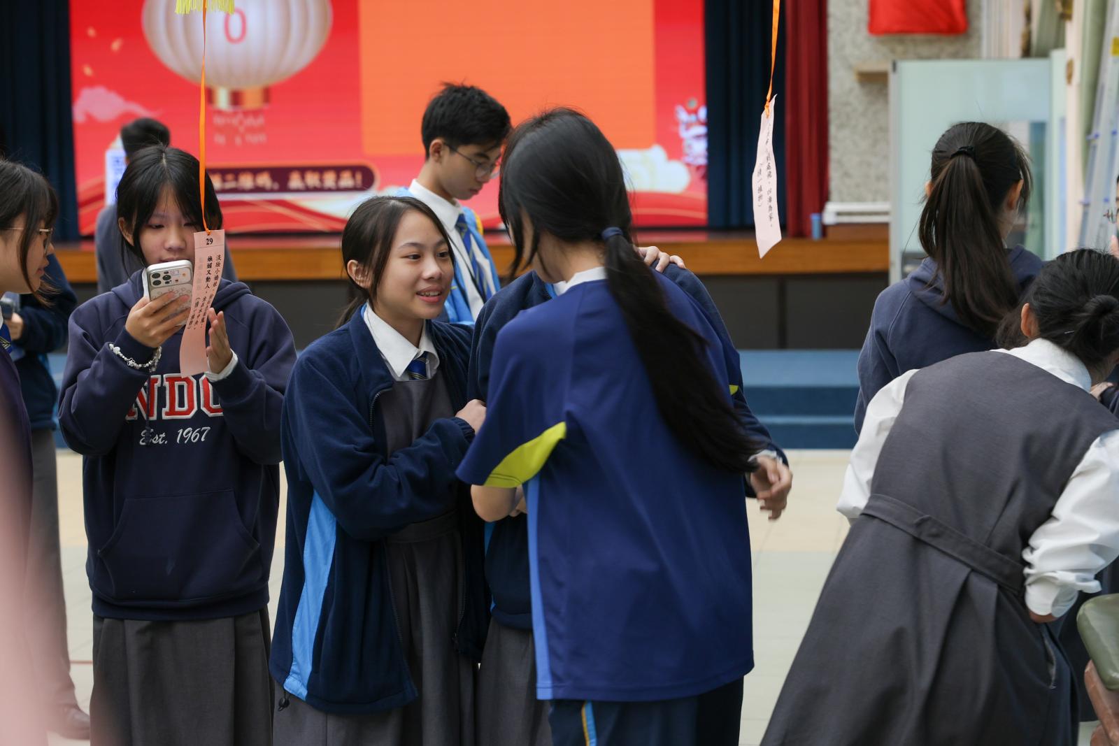 適逢元宵佳節,本校中文學會於3月3日舉辦了「新春元宵嘉年華」,讓同學深入了解及體驗傳統中華文化,在歡聲笑語中度過充實而有意義的午後 。同學穿梭於燈籠之間參與猜燈謎遊戲,時而低頭沉思,時而驚喜高呼,氣氛熱烈。師生亦聚首一堂,品嚐湯圓,共享節日喜悅 。