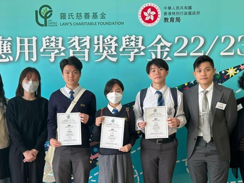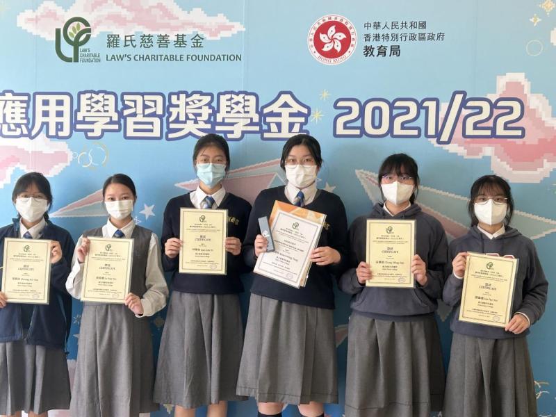 本校中六級同學獲得羅氏慈善基金及教育局合辦的「應用學習奬學金(2021/22學年)」,獎勵他們應用學習科成績優異、表現良好,當中包括:關潁彤同學(酒店營運)、莊穎茵同學(西式食品製作) 、劉佩儀同學(西式食品製作) 、張凱欣同學(電影及超媒體)、林樂怡同學(時裝形象設計)及勞茵儀同學(西式食品製作),各得獎狀及獎學金一千元正,而關潁彤同學更得到特別嘉許獎項,另得獎狀及獎學金一千元正。